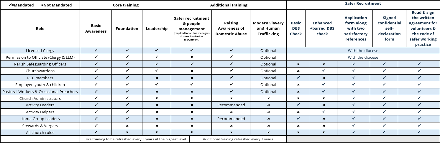 Basic Awareness online safeguarding training is required for all roles within the Church